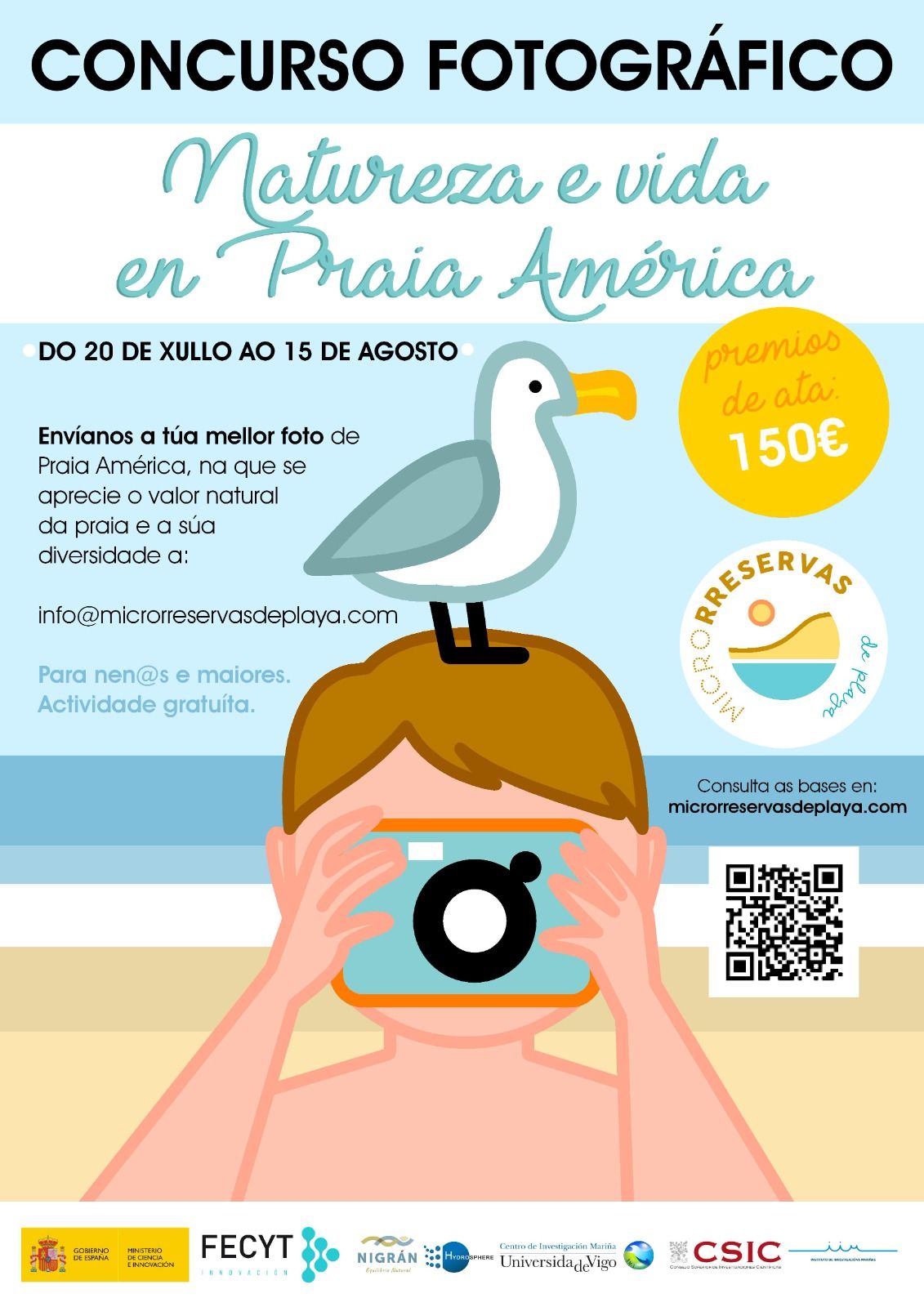 En él podrán participar personas de todas las edade, estableciéndoselos 3 premios de 150 €, 100 € e 50€. Las bases del concurso las podéis consultar en https://microrreservasdeplaya.com/concurso/